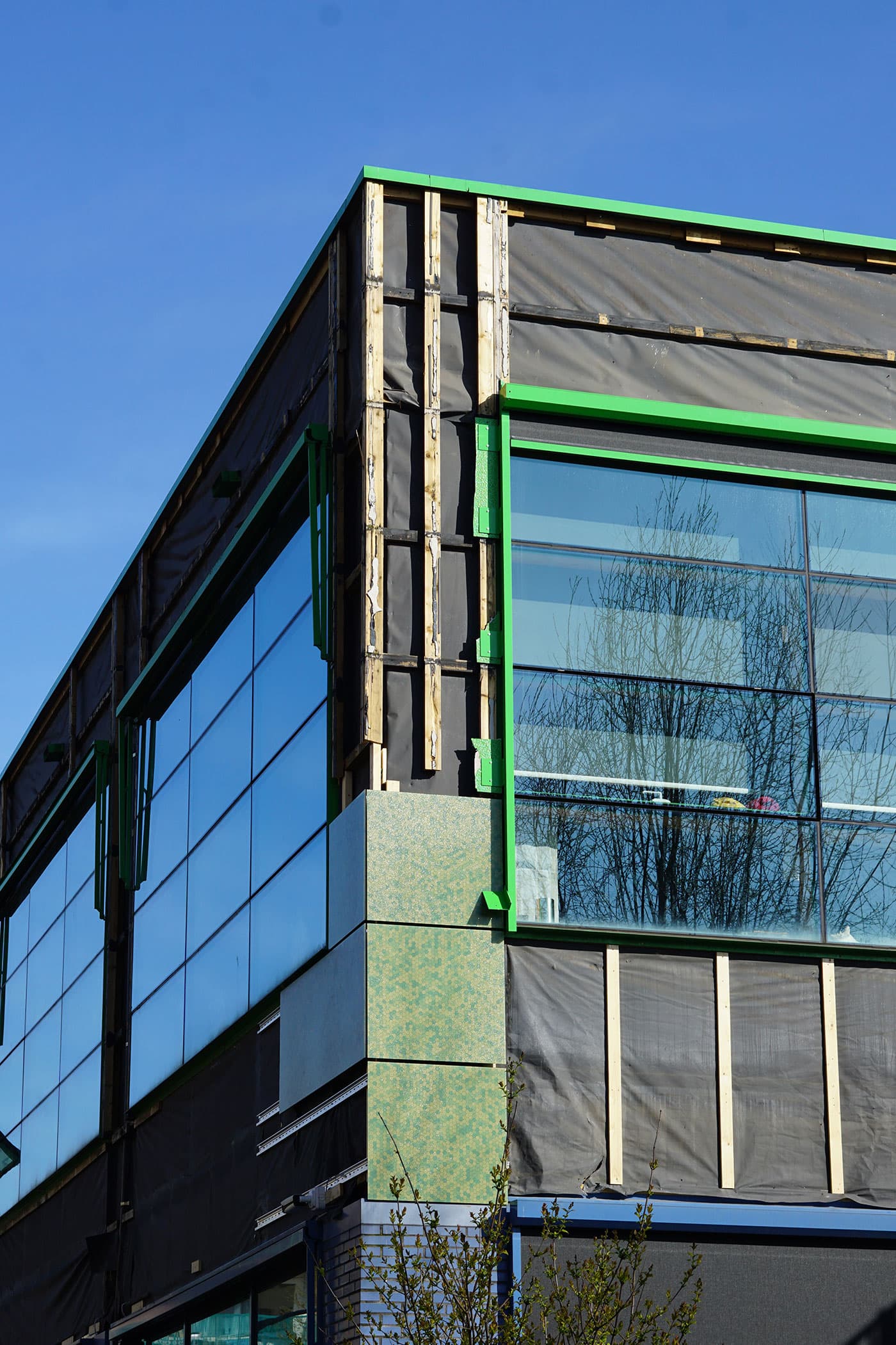 Die Kikker ist eine Grundschule in Osdorp, die einst von Liesbeth van der Pol von DOK Architekten entworfen wurde. Inzwischen ist eine gründliche Renovierung der giftgrünen Fassade notwendig geworden, und die DOK Architekten und Solarix wurden von der Gemeinde Amsterdam beauftragt, einen Vorschlag für eine neue Fassade zu machen. Schon bei der ursprünglichen Planung wollten die Architekten gerne Energie über die Fassaden erzeugen, aber das war damals mit dem damaligen Wissen und Können nicht möglich. Diese Renovierung bot nun eine zweite Chance.