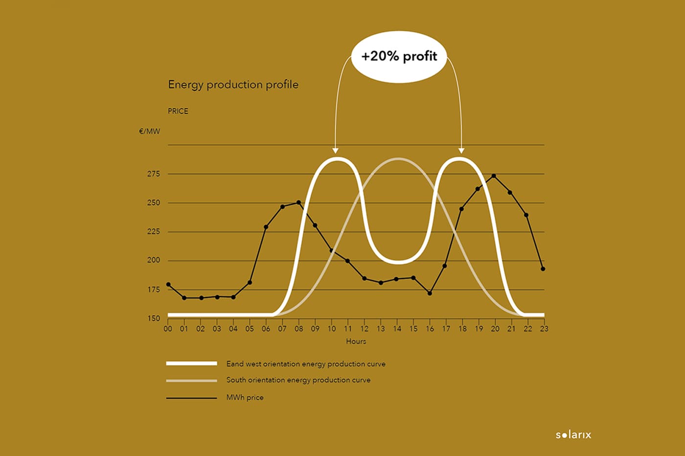 Voordelige marktprijzen: Verticale zonnepanelen profiteren van hogere energieprijzen tijdens piekuren op de elektriciteitsmarkt (EPEX-spot). De pieken in de ochtend en middag sluiten beter aan op deze marktprijzen.