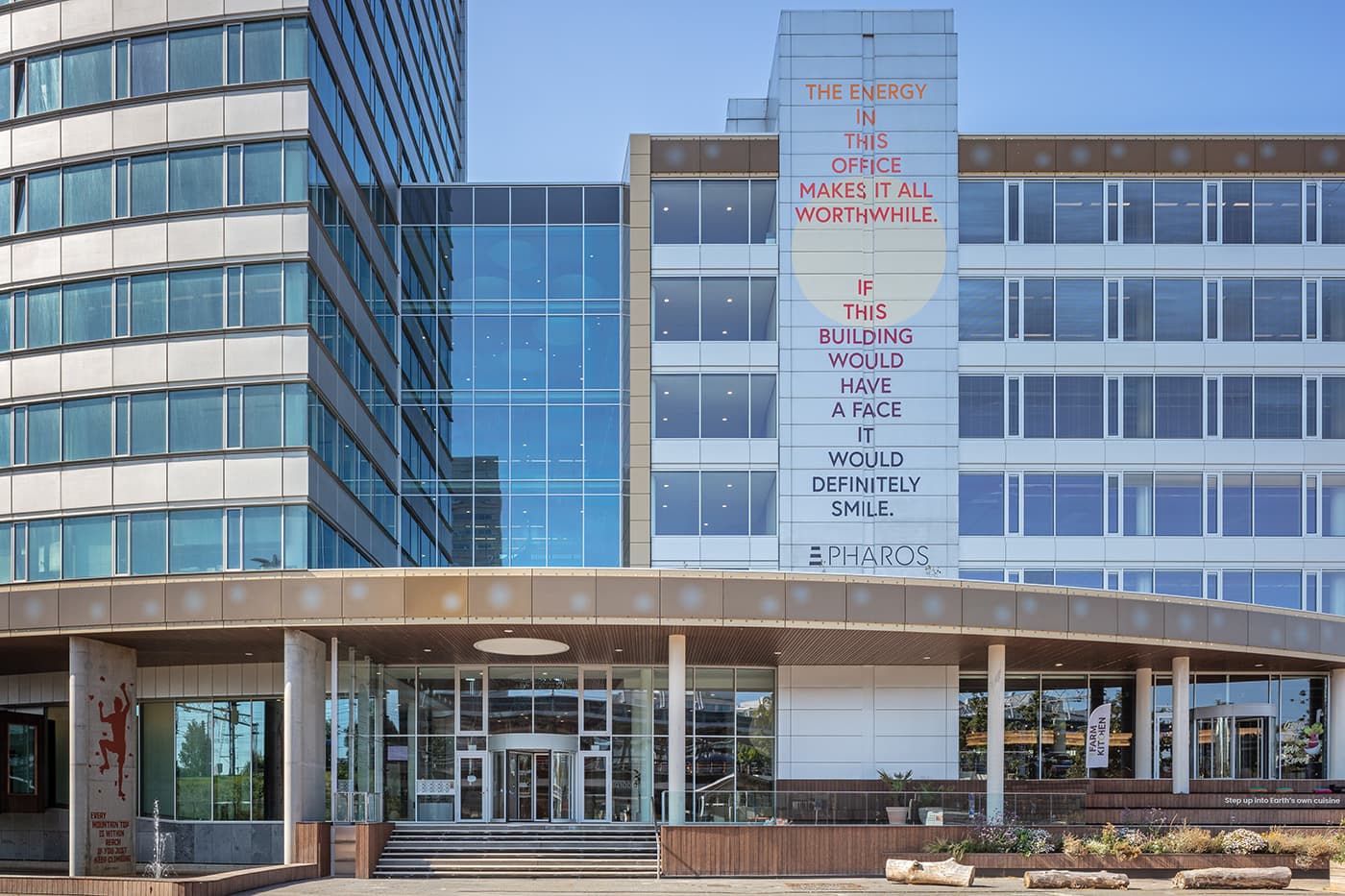 Pharos is een kantoorgebouw uit 2003. Het doel van opdrachtgever Cairn (inmiddels Schroders Capital) is om het gebouw te transformeren tot de gezondste werkcommunity van Europa waarin circulariteit en energielevering centraal staan. Een deel van het gebouw is gerenoveerd, maar er is ook een nieuw deel aangebouwd. Een van de doelstellingen was de realisatie van een energieopwekkende gevel.